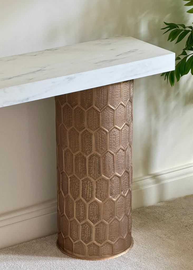 Honeycomb white marble-like top Console