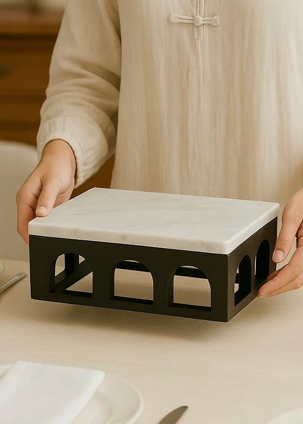 The top features elegant marble in white, black, or beige, reflecting the timeless charm of Ramadan nights.