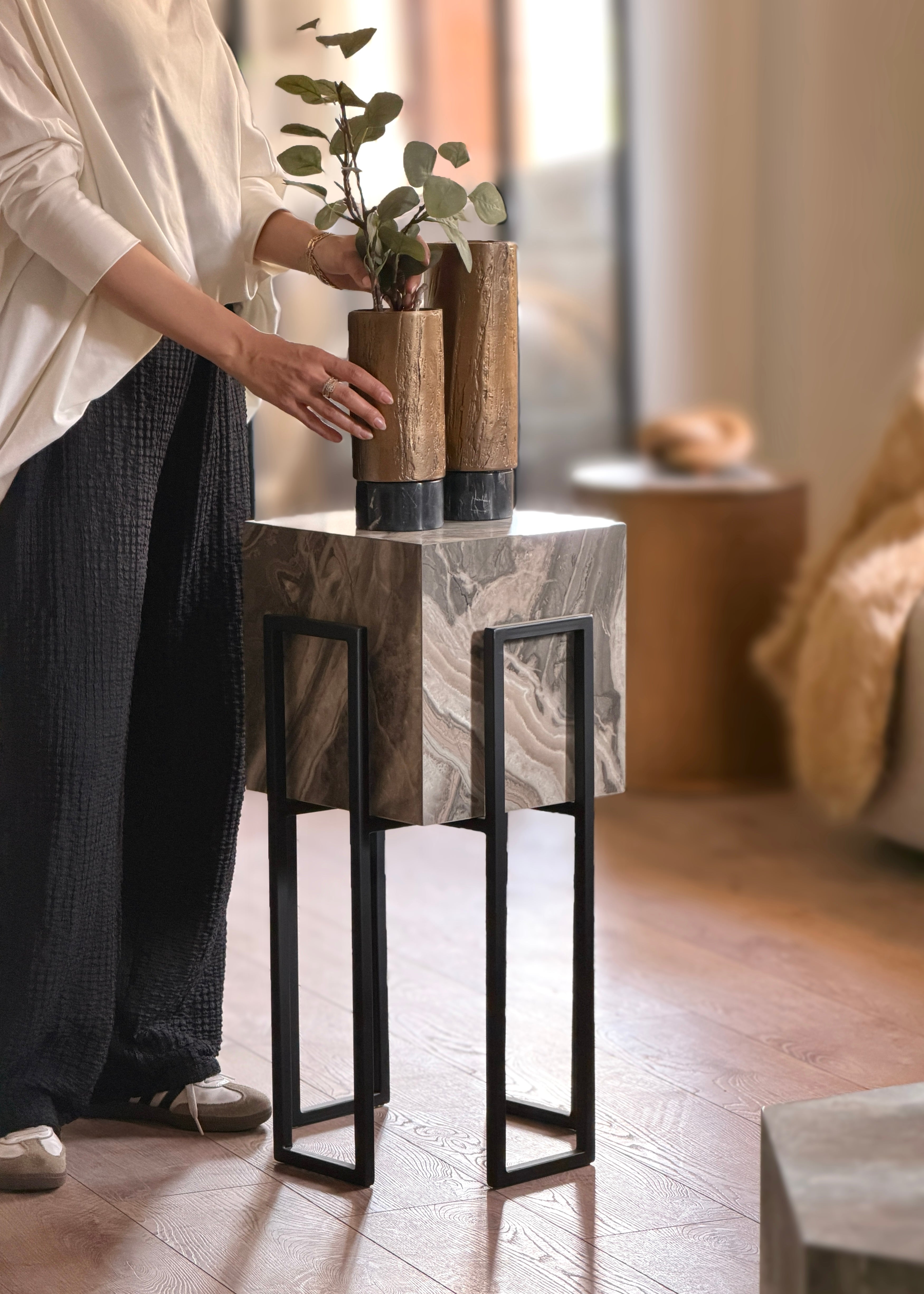 This black stand Edition plant pot is designed for versatility, ideal for homes, offices, or other places in need of an elegant touch.