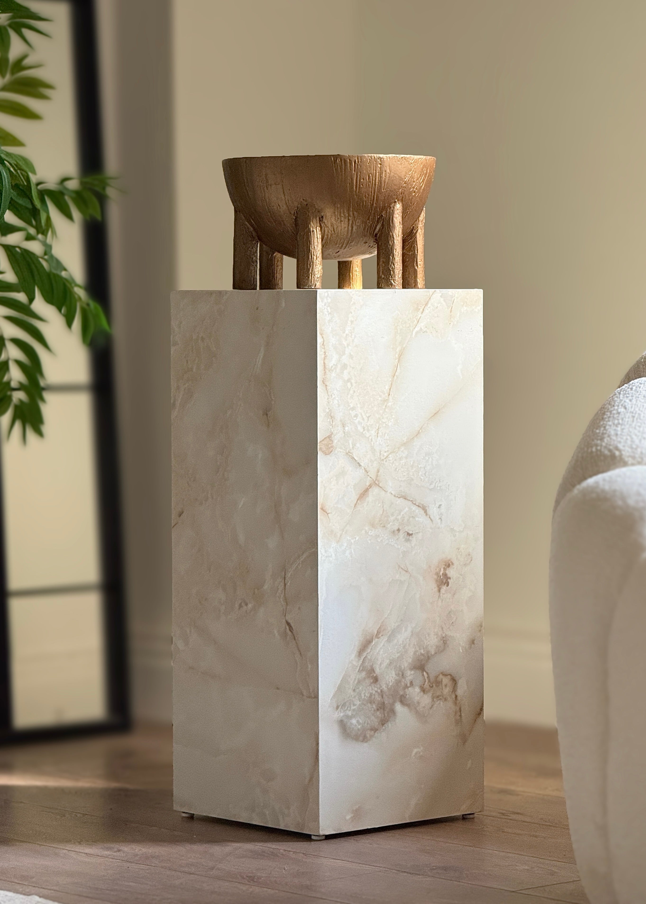 Designed to bring a refined, natural look to any space, these pedestals offer a practical and stylish solution without the weight of real stone. Perfect for showcasing your favorite décor, they blend seamlessly into any interior.