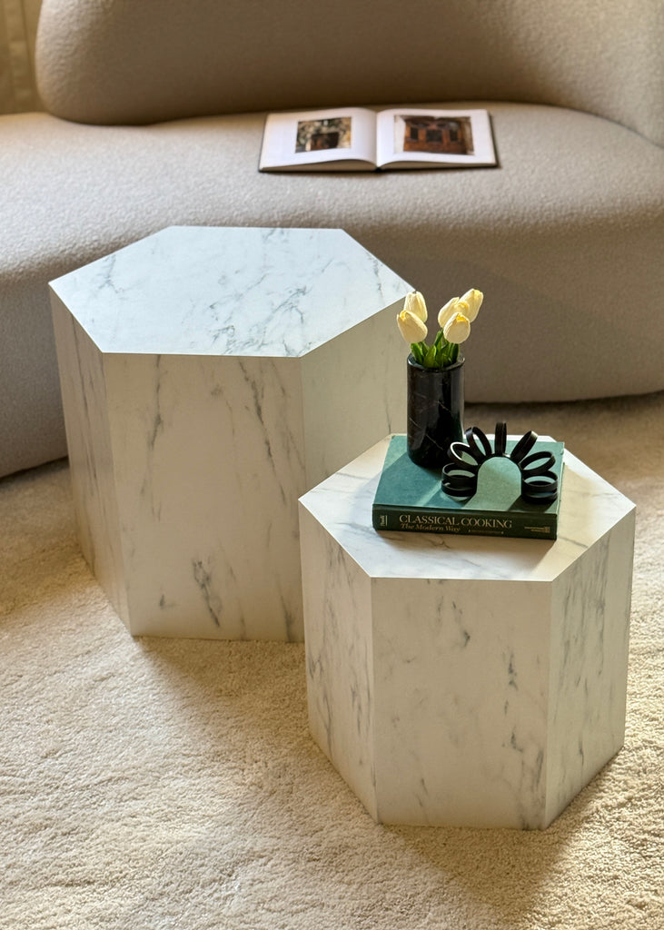 Creamy beige Marble Alike Table ( Available in 2 Sizes )