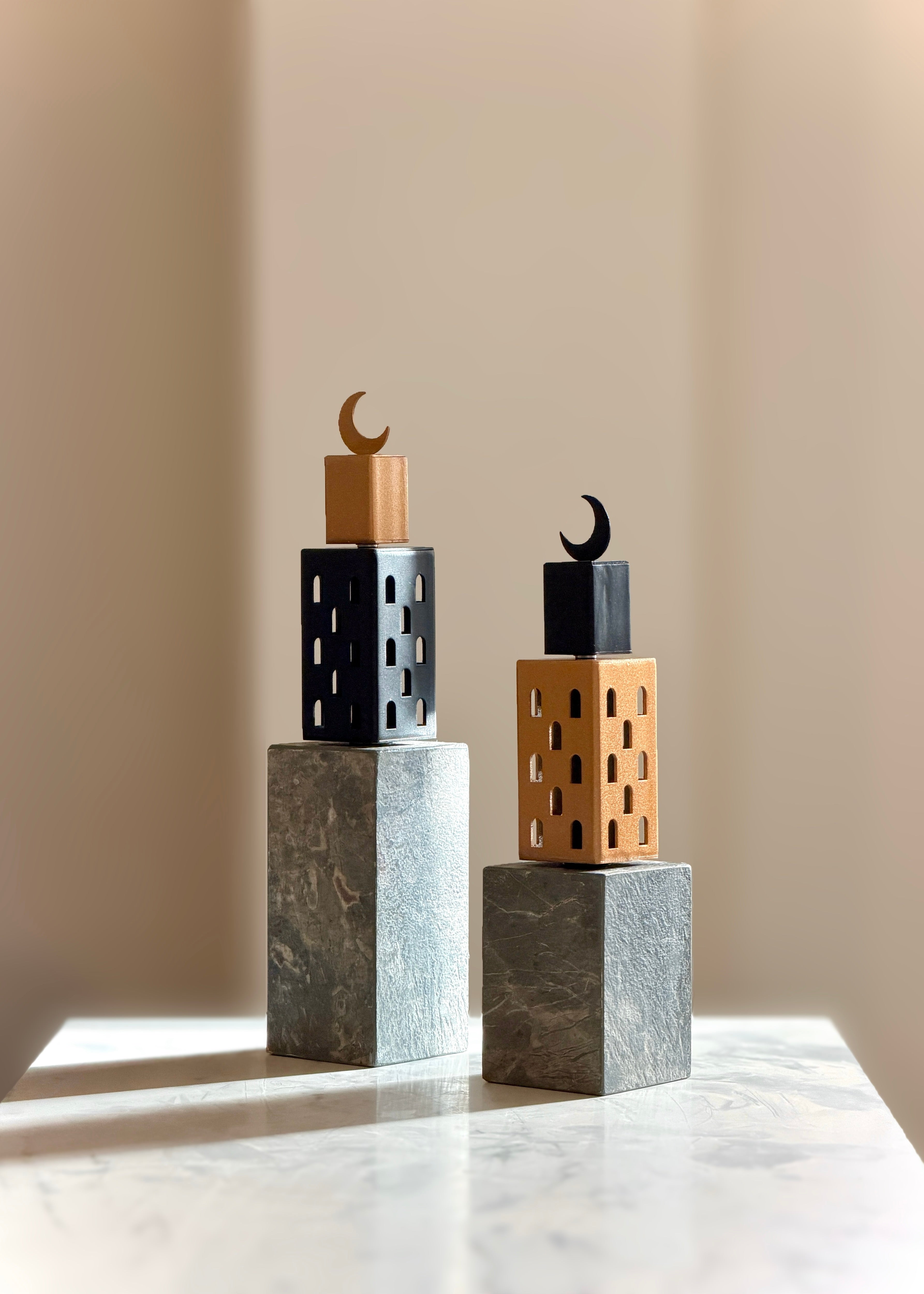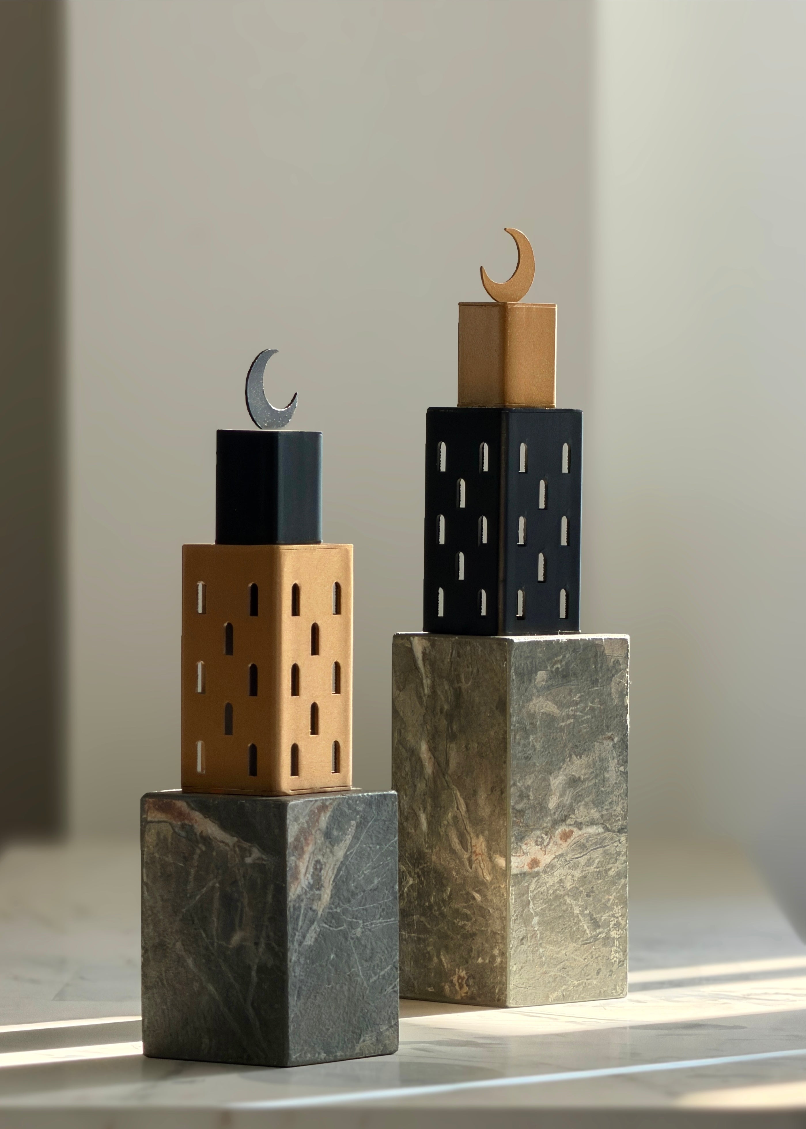 Crafted with a marble-like base and refined metal components, each element connects seamlessly through magnets, making it easy to assemble, re-style, and personalize.