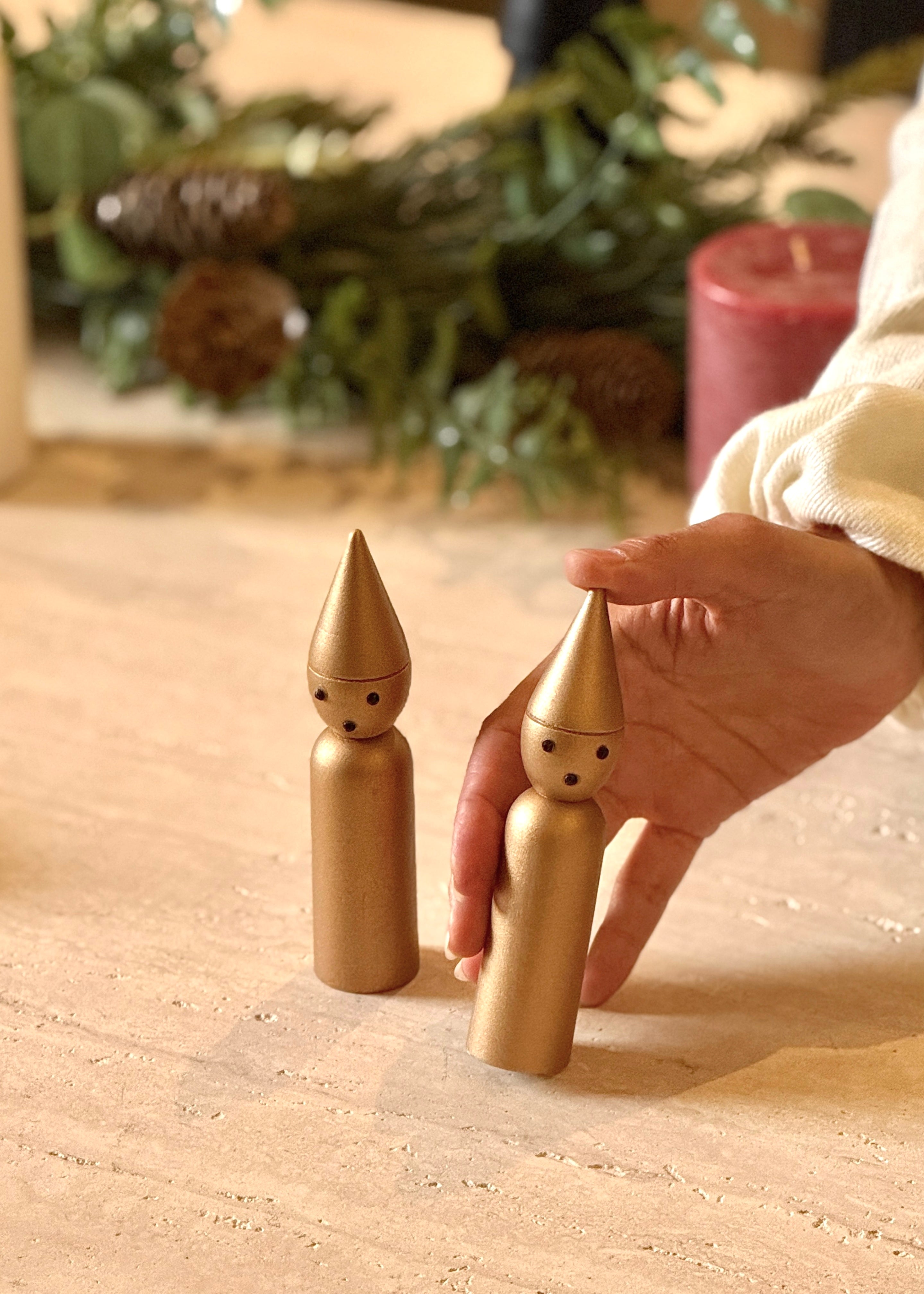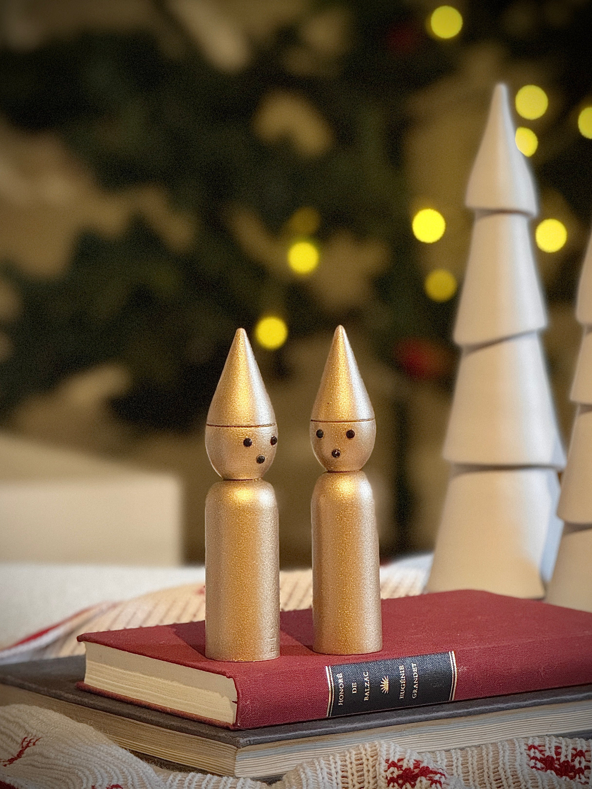 Celebrate the magic of Christmas with this elegant set of two handcrafted figurines, featuring a sleek, minimalist design finished in radiant gold.